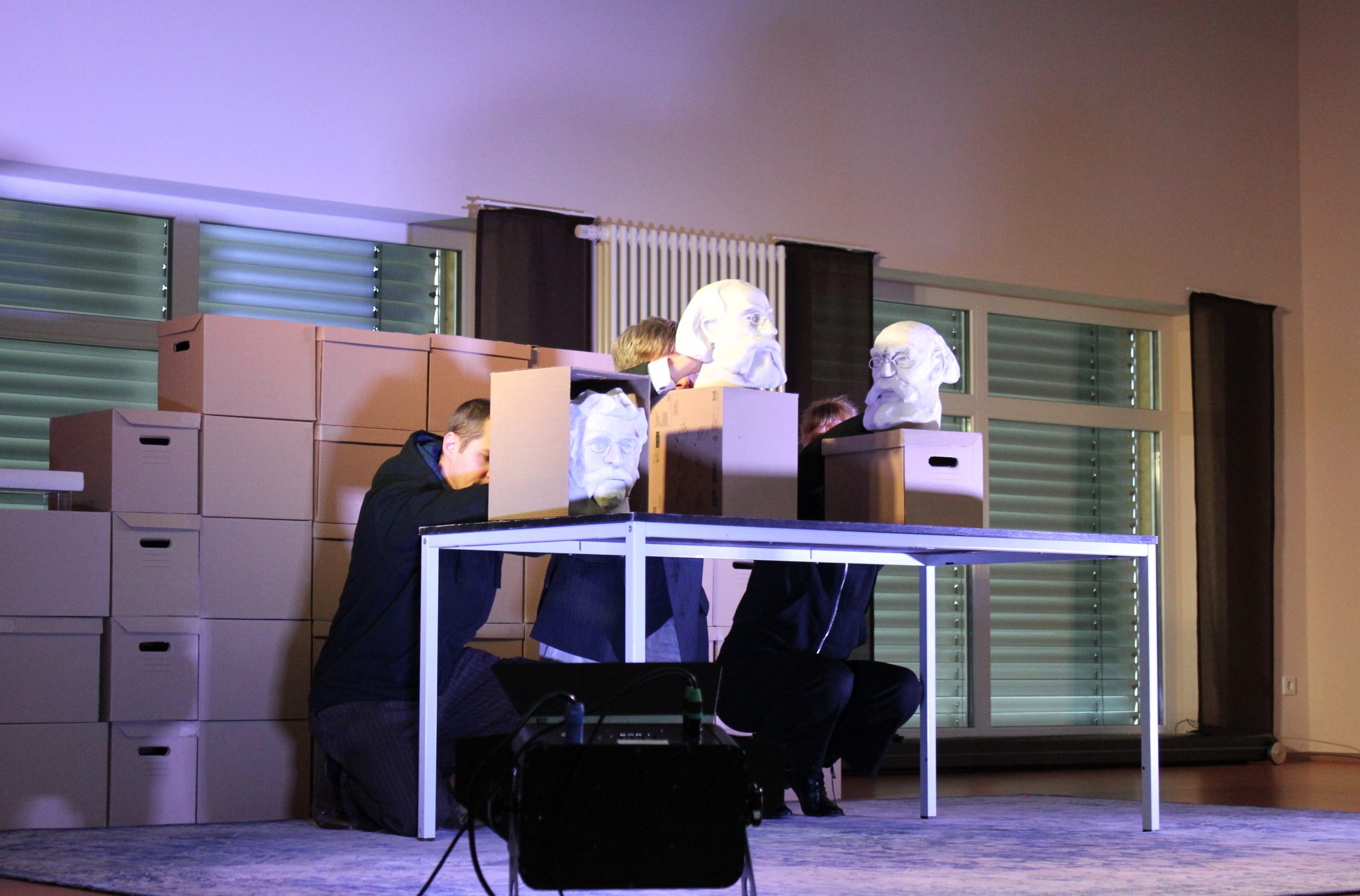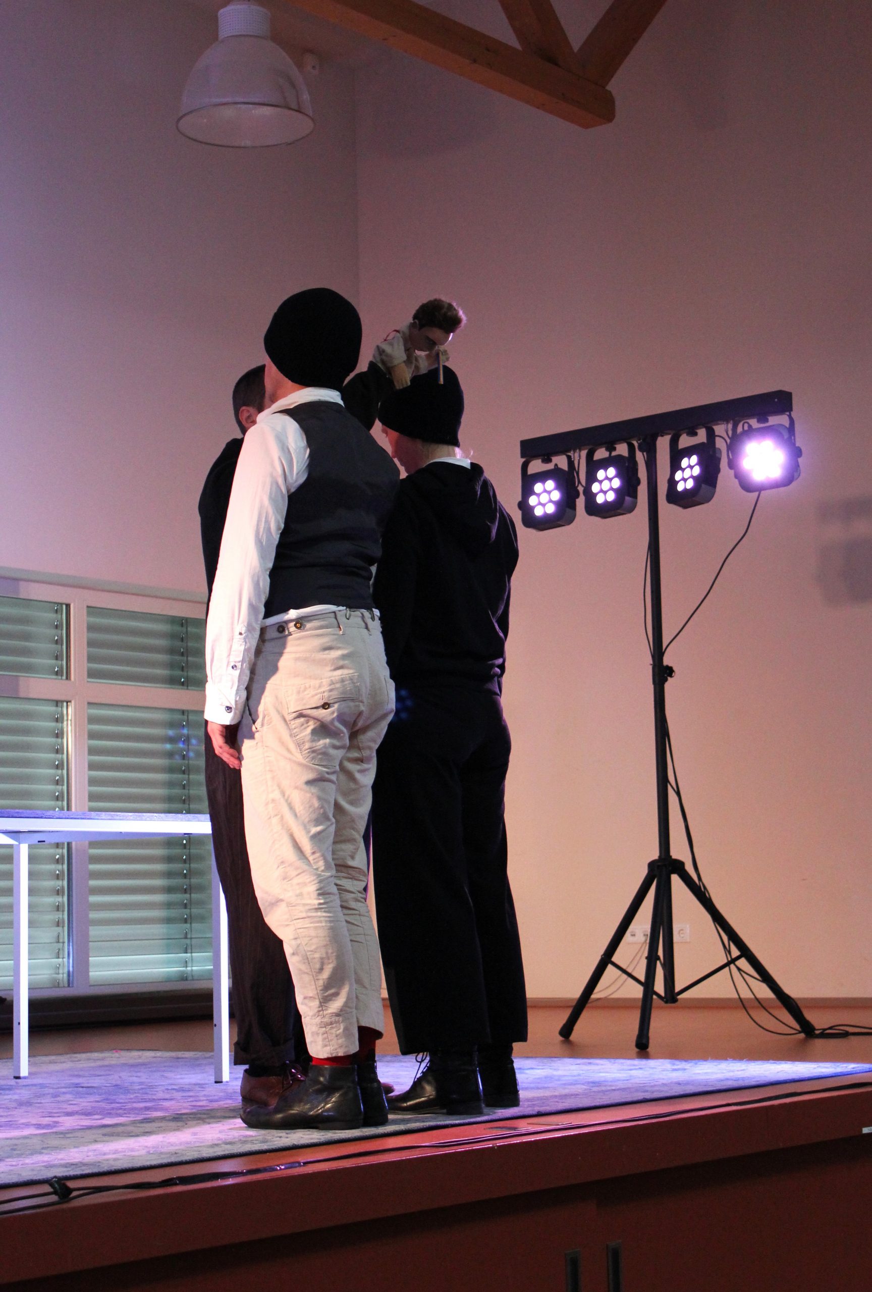 Gerade diese Haltung brachte das Schauspieltrio Gerda Pethke, Konrad Schreier und Jan Uplegger unter der Regie von Kai Schubert eindrucksvoll auf die Bühne. Durch einen geschickten dramaturgischen Kunstgriff – den Einsatz von Handpuppen, entworfen von Odile Pothier – wurden historische Figuren der damaligen Zeit lebendig und die politischen Verhältnisse der frühen 1930er Jahre wie durch ein Brennglas erfahrbar.